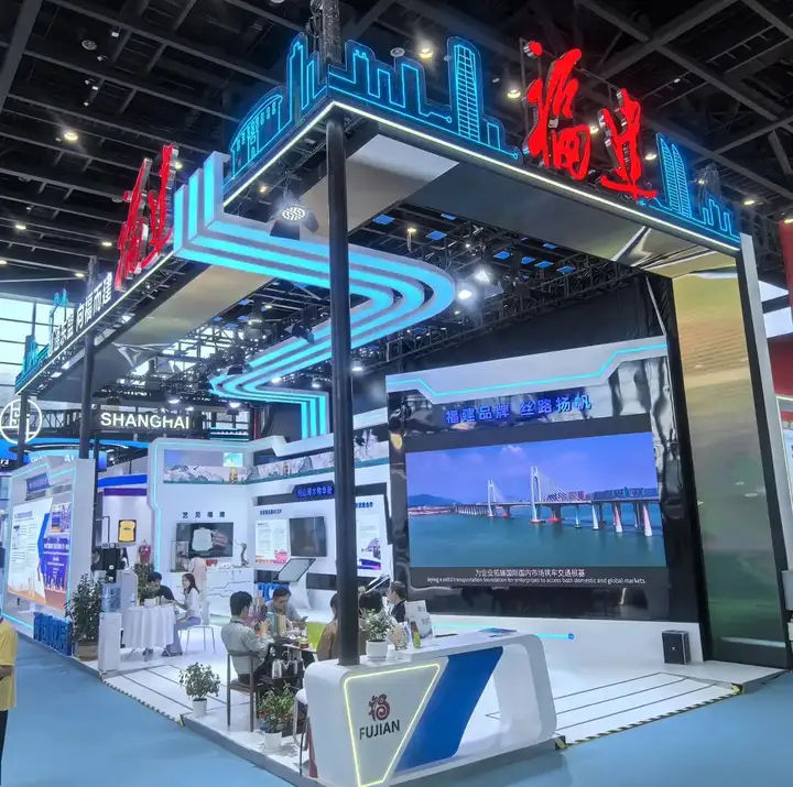 今年是“数字福建”建设25周年,本届东博会的福建形象馆及企业展区,以“慧通东盟 向福而建”为主题,设计精巧且科技感十足。