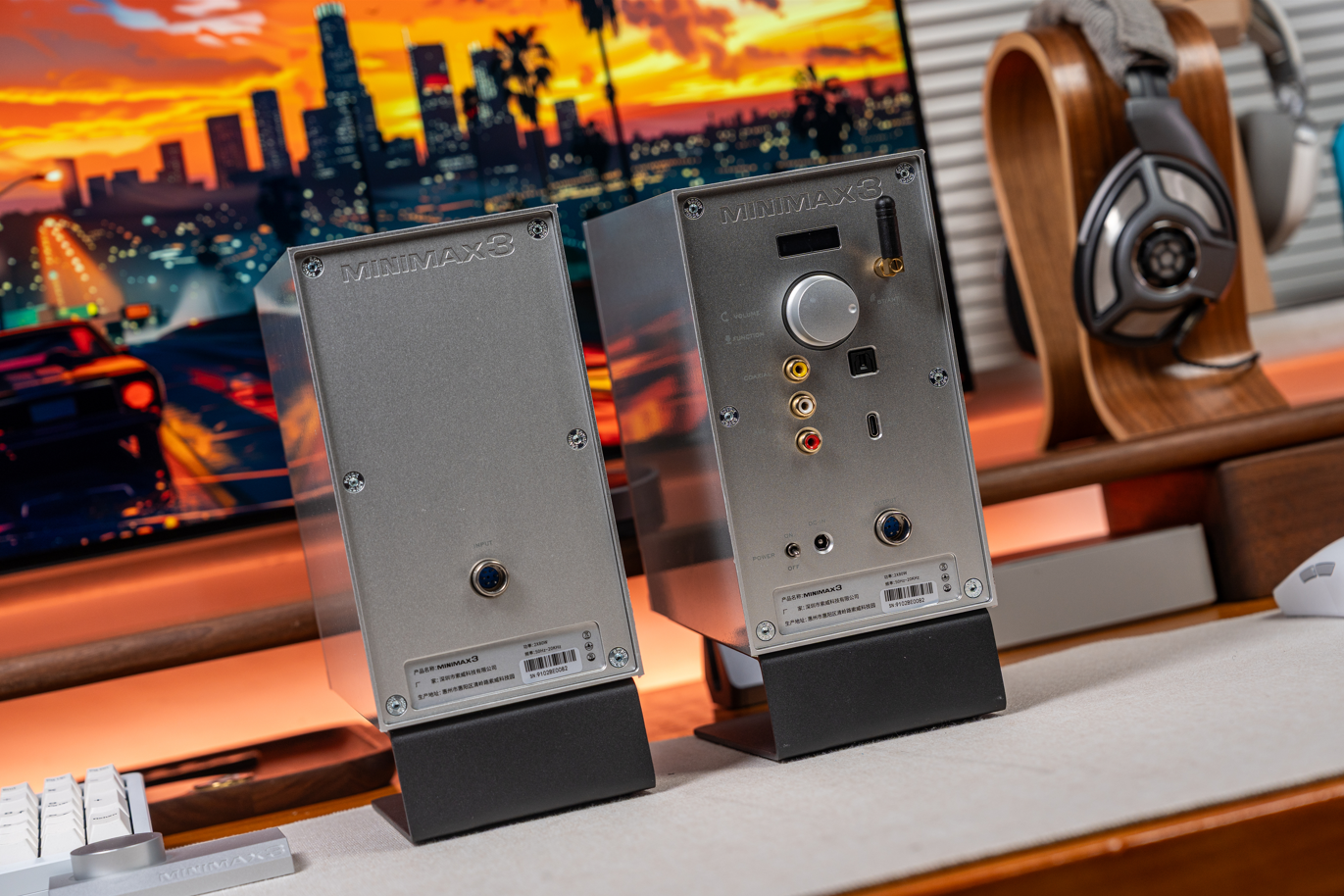 此外,MiniMax3还支持多种输入方式,从它的背部面板可以直观的看到,它配备了数字光纤同轴接口、USB-C接口、蓝牙接口、还有RCA模拟输入接口,接口非常丰富,拓展性也比较强,如果还有XLR平衡输入接口就更完美了。另外MiniMax3采用的是主副箱的设计,不过它有一个左右音箱通道调换选项,用户可以根据自己的事情拜访情况进行摆位设置,这一点比较人性化。