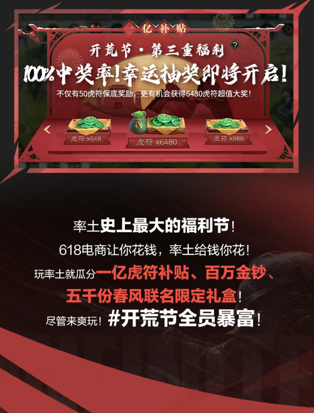 开荒节最后一波福利更是逆天,直接全员白送虎符,按人头算,每人一份,不然让隔壁老外看到,还以为我们玩不起呢!