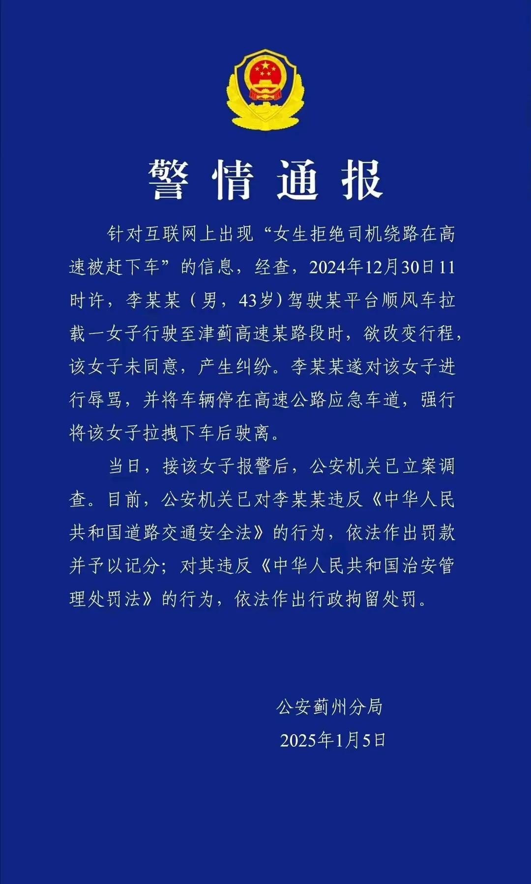 嘀嗒平台则说:司机中途需要去拿亲友的东西,因为前面女孩迟到了20多分钟,害怕赶不上飞机,不同意司机下高速。于是才发生了争执,司机拉女孩下车。自己走了。