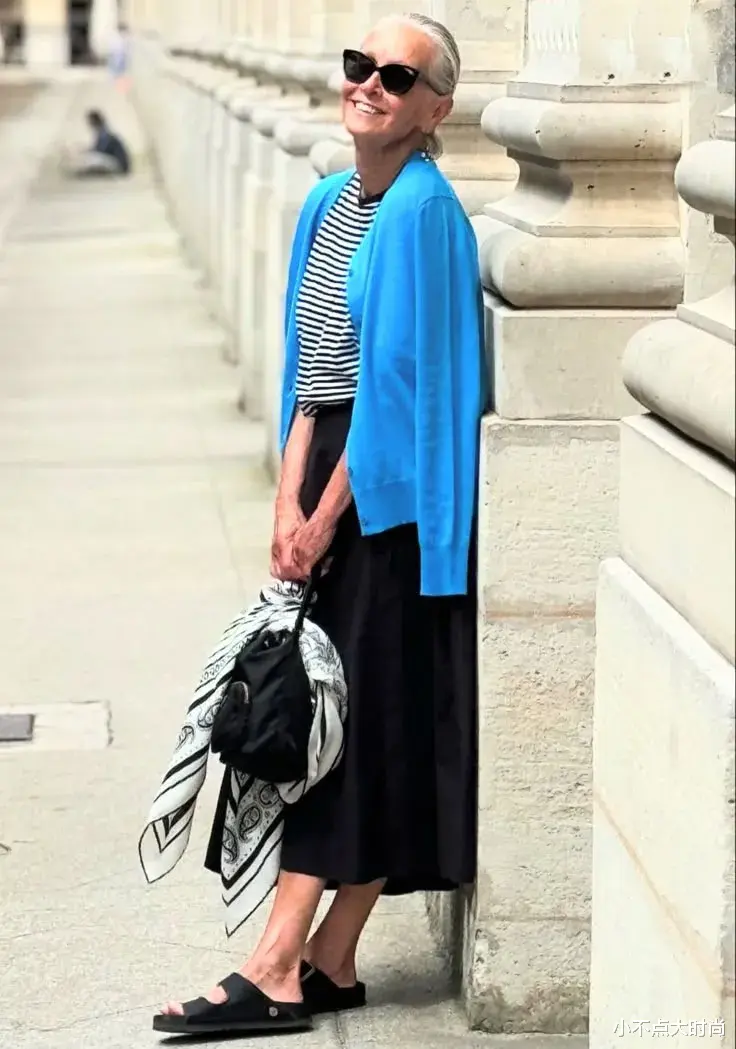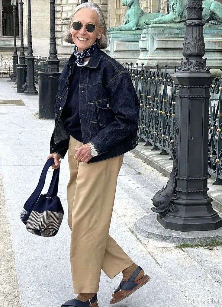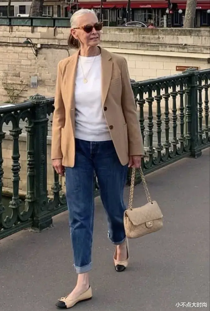 时尚的老人们都不会把自己局限在老气的老年装里,她们会穿简约的基础款,百搭实穿不过时。基础款的无龄感既不显老也不装嫩,得体耐看又时尚。▼
