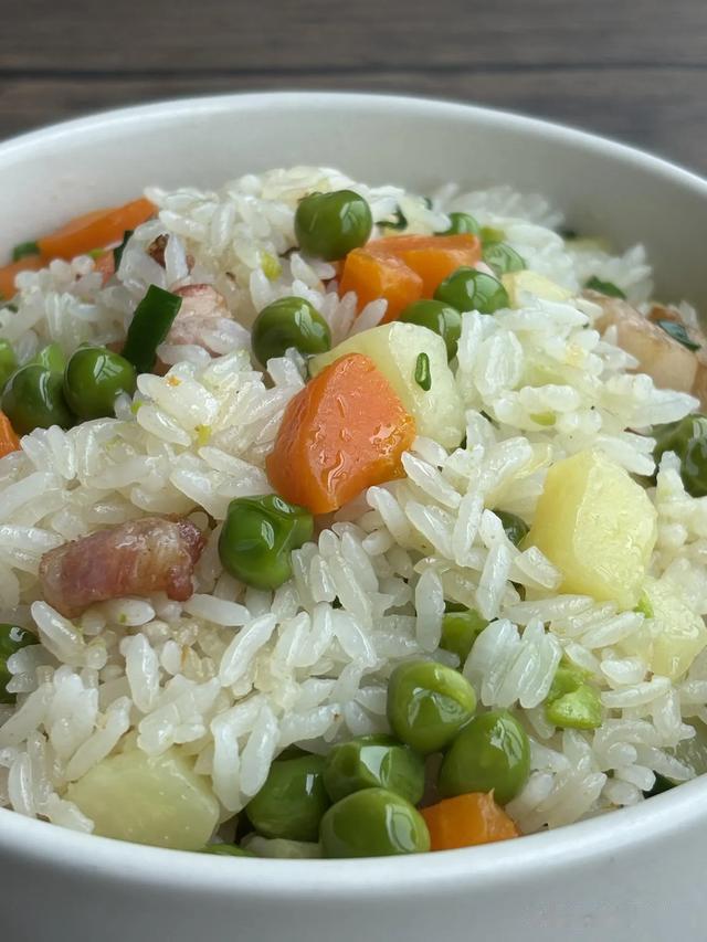 详细做法:先把糯米提前泡上 1 小时,让它喝饱水。接着把胡萝卜切成指甲盖大小的小块,腊肉切成小丁,还有豌豆,要一颗颗剥好,再仔细地洗干净,就像给这些小青豆宝宝们舒舒服服地洗个澡。