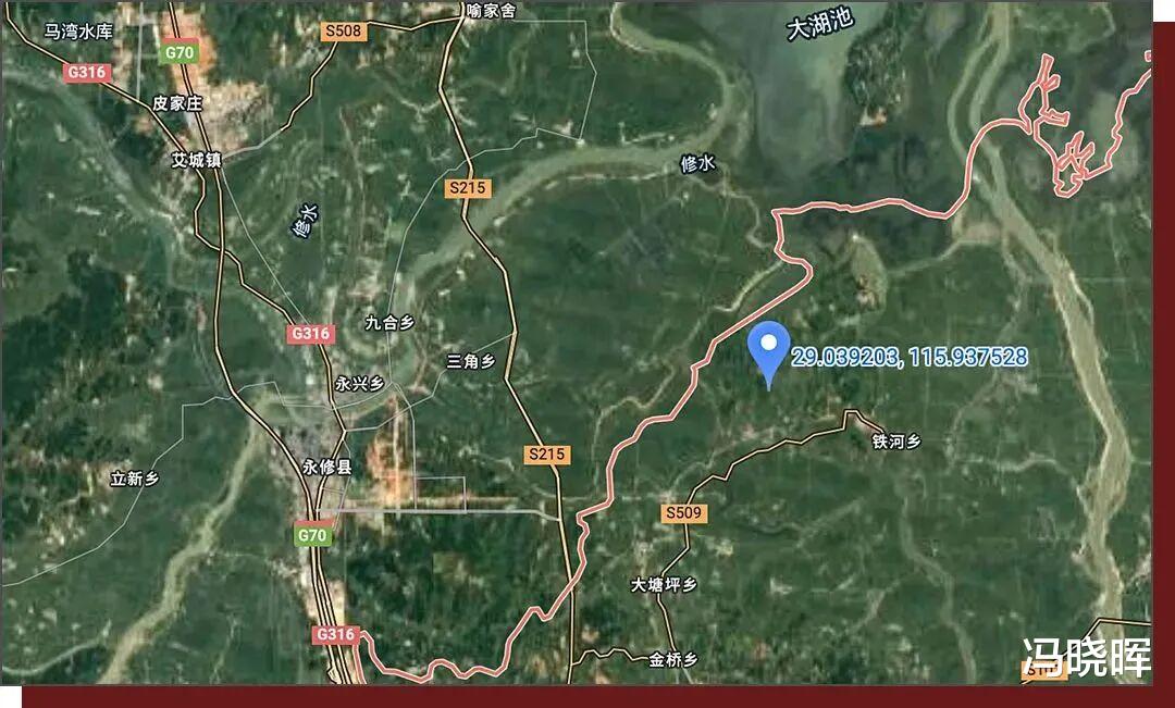 最后再说一段轶事。永修与西汉海昏侯国有直接继承关系。两晋时期,海昏县因地质沉陷,大部分陆地没入鄱阳湖,被废后并入永修。永修与南昌新建之间多为沼泽湿地,县域边界屡有变动。海昏侯墓距永修县界仅两公里左右,笔者标注的坐标正是墓葬所在,旁边的红线即为县界。