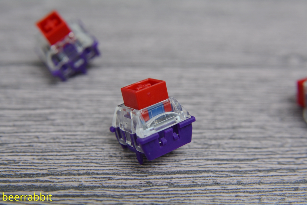 轴体的轴芯采用红色,上盖透明,底座为紫色。