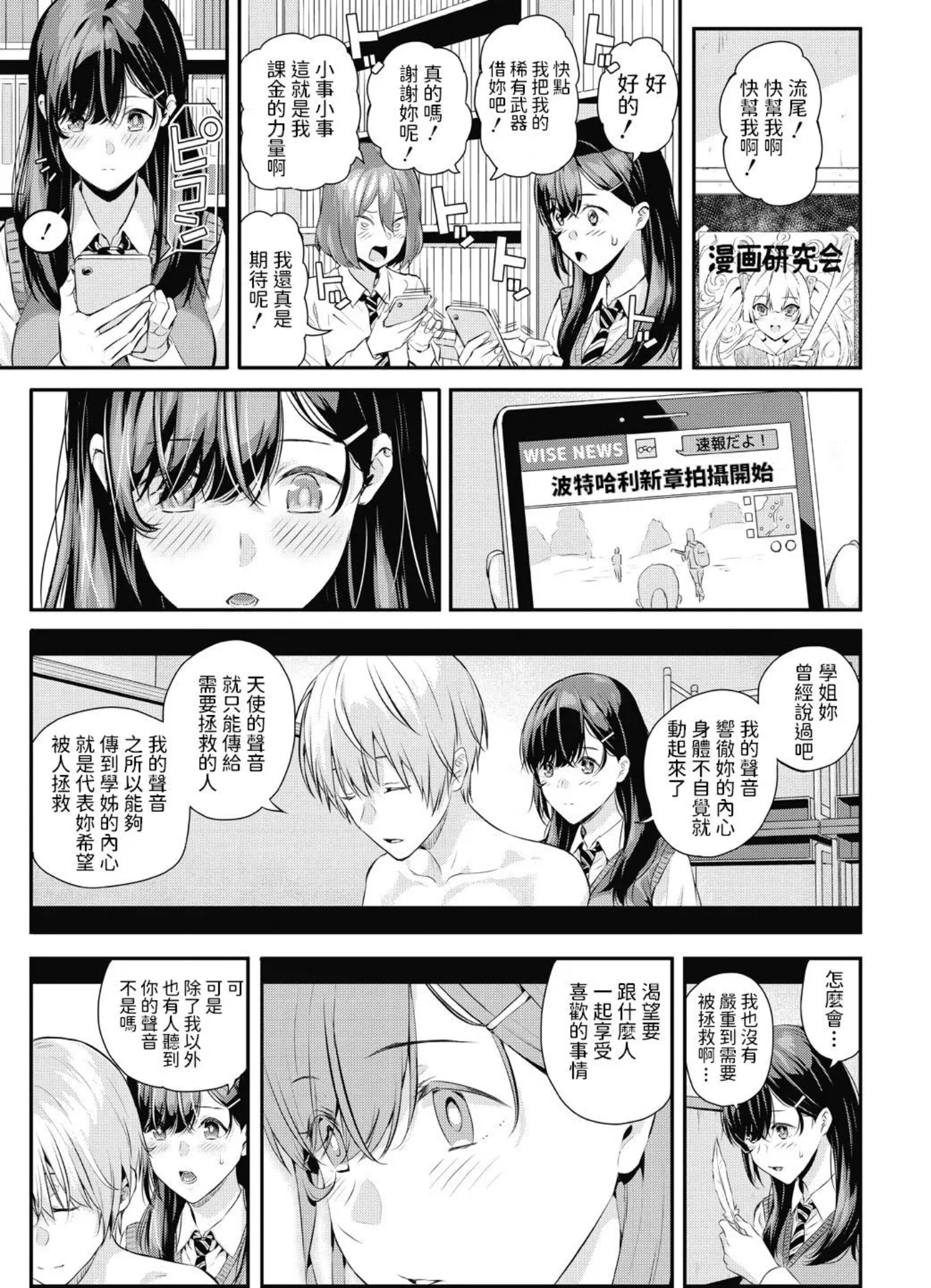 直到某天,她遇到自称是天使的男高校生,也就是男主——“天使君”。男主也不知道该说是他傻还是天真,因为他始终相信自己是天使,能拯救他人,属于是漫画看太多,中二病过于严重了。