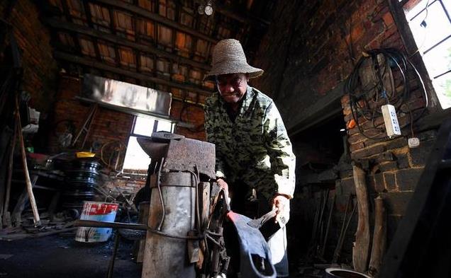 农村人干活用的锄头,犁,刀,斧子等,过去都是铁匠师傅在高温的铁匠铺里,用辛苦的汗水打制出来的。