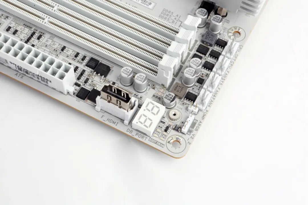 显示扩展方面,除常规接口外,在主板电源接口右侧板载了HDMI副屏接口,方便玩家在机箱内加装小尺寸显示屏,既能实时显示硬件监控数据、自定义图片或动画,又能增添整机科技感,满足个性化需求。