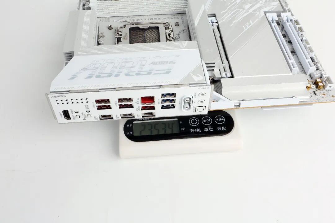 ▲该主板的整体用料相当扎实,重量达到2353g。