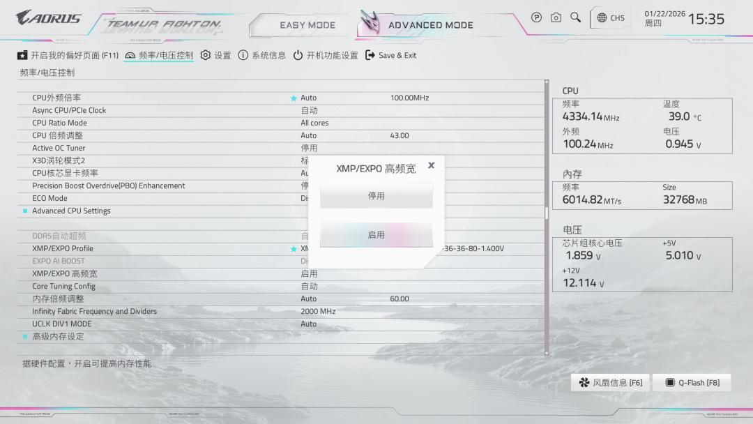 ▲主板BIOS内置了“高频宽”功能,可提升内存性能。