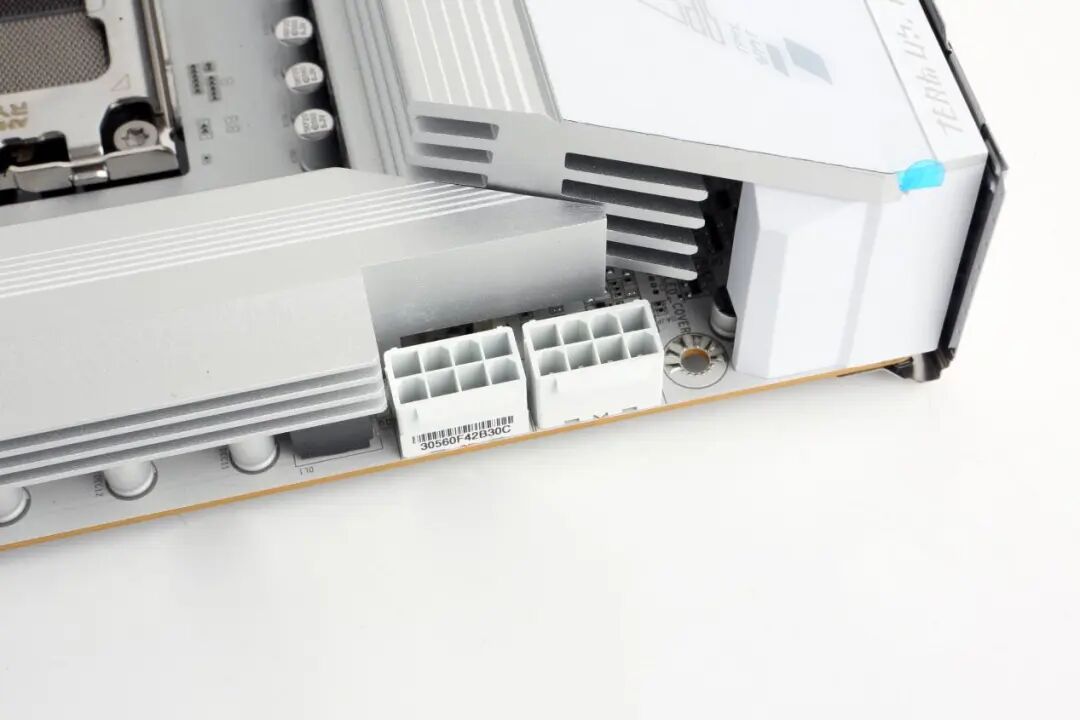 20相豪华供电,散热设计出色这款主板搭载AMD扩展性能拉满的X870E芯片组,供电规格堪称豪华。其采用16(CPU核心)+2(核显)+2(辅助)相规格供电架构,其中CPU核心供电与核显供电电路均配备支持80A高负载的SPS MOSFET。强悍的供电规格让主板的“动力”更强,仅16相CPU核心供电电路理论上就能承载最高1280A电流输出,足以轻松驾驭基于Zen 4、Zen 5架构的锐龙7000、锐龙8000G及锐龙9000全系列处理器,即便是功耗较高的旗舰型号也能稳定运行。此外,技嘉X870E X3D冰雕主板搭载高强度供电接口,内部接针采用特制实心结构设计,不仅能让电源线连接更紧密充分,有效降低接触阻抗、提升供电效率,还大幅增强了接口的坚固耐用性,长期使用更可靠。