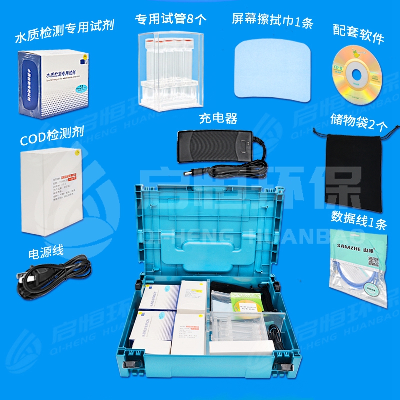3、便携手提箱式设计,仪器箱与配件箱层叠一体式,可在户外直接进行水质测定操作,也方便用于实验室操作;