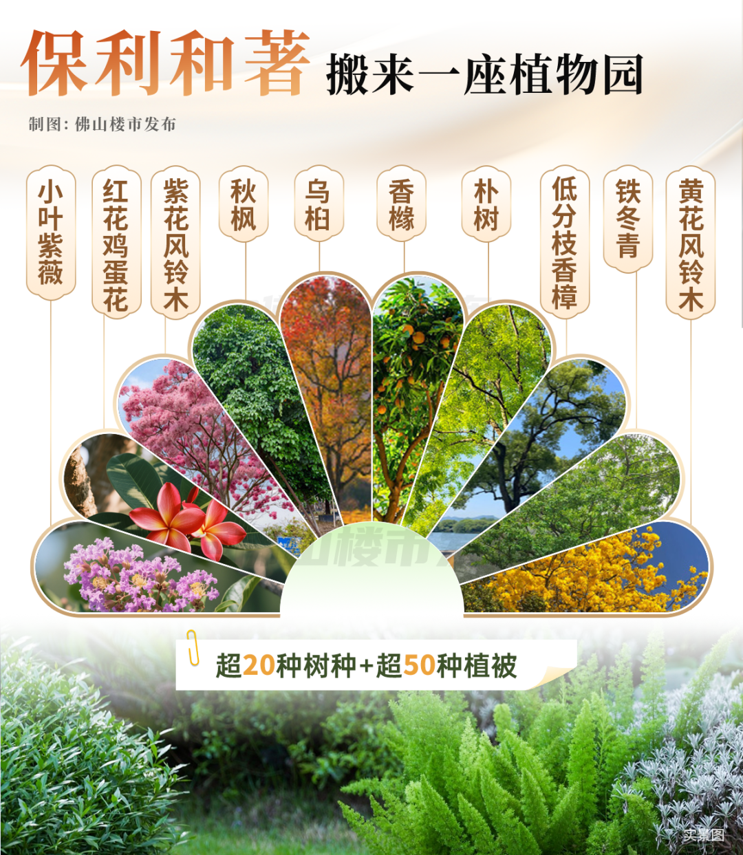 你大概不会想到,在近6000方的中央园林中,保利和著重金移植了超20种树种和50种植被,相当于搬来一座植物园。