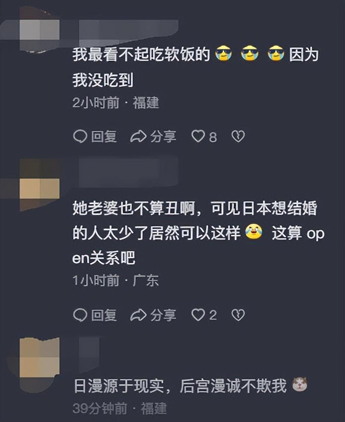 她老婆也不算丑啊,可见日本想结婚的人太少了居然可以这样,这算 open关系吧。