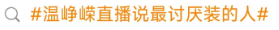 是心直口快?还是忍无可忍?最近,演员温峥嵘在直播时说自己性格朴实,所以最讨厌装的人,还说自己喜欢和赵露思、陈都灵↓温峥嵘