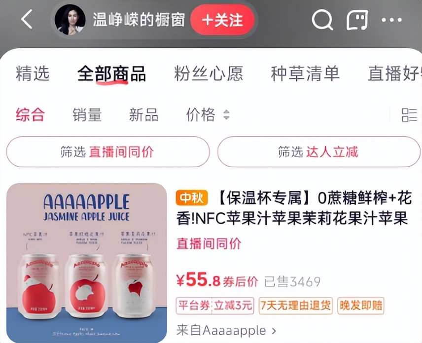 翻看了下,温峥嵘最近确实是跟赵露思走得比较近,甚至还在短视频账号带货赵露思的苹果汁↓