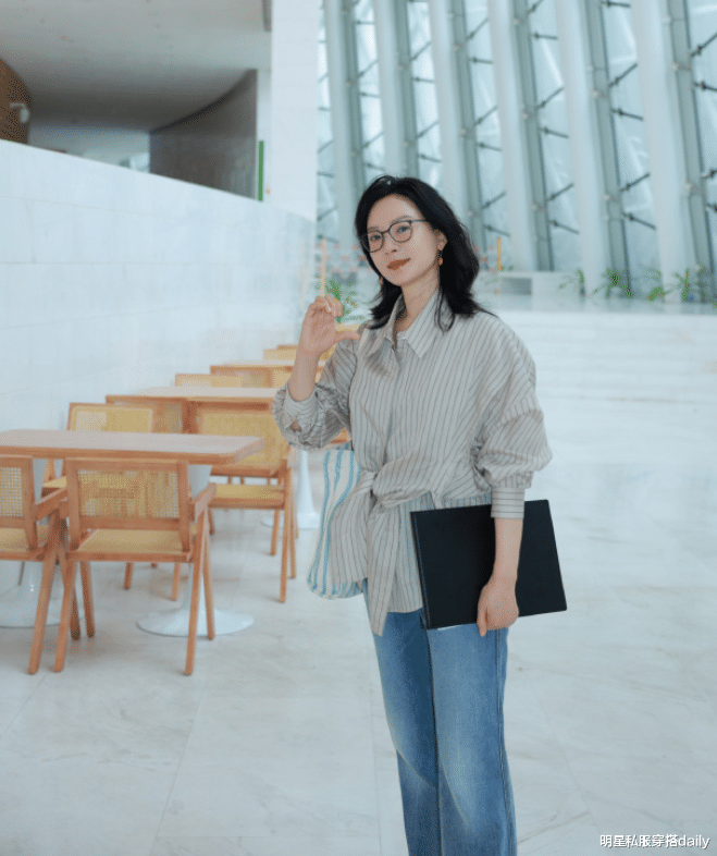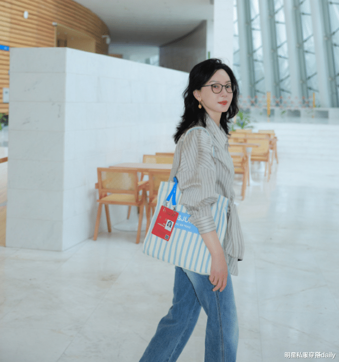 可以发现,陈数的穿搭理念永远都是舒适与优雅并重,我们可以看到,她下面选择的这款条纹衬衫是比较宽松且松弛的,但腰部的设计充满巧思,让衬衫看起来宽松却不是肥大,而是恰到好处的遮掩小肚腩等缺点,达到一个美化身材的效果。