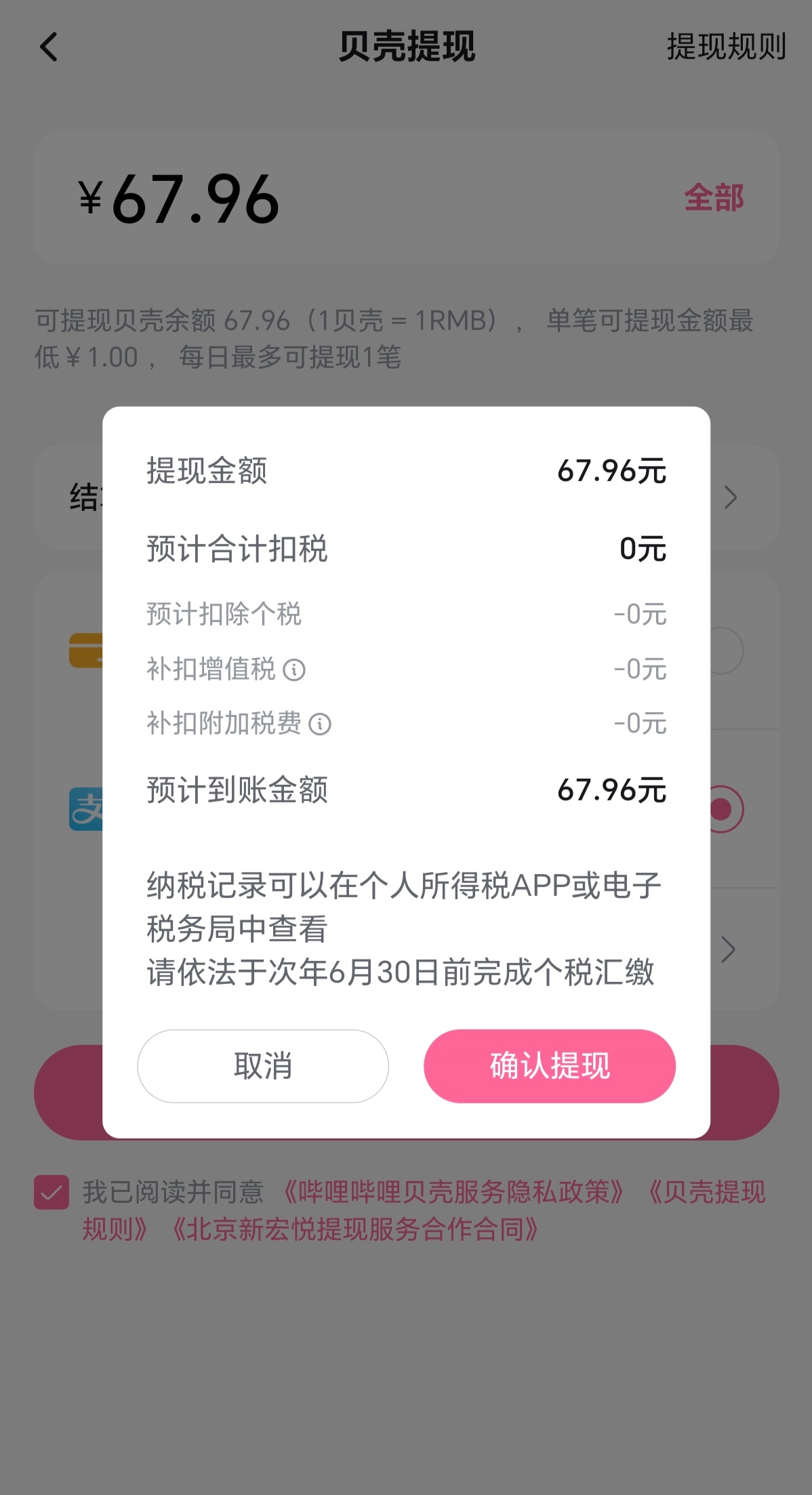 现在b站的提现规则是单笔提现不少于1贝壳,也就是说满1元就能提现,可以提到支付宝或者银行卡,跟今日头条的提现规则差不多。