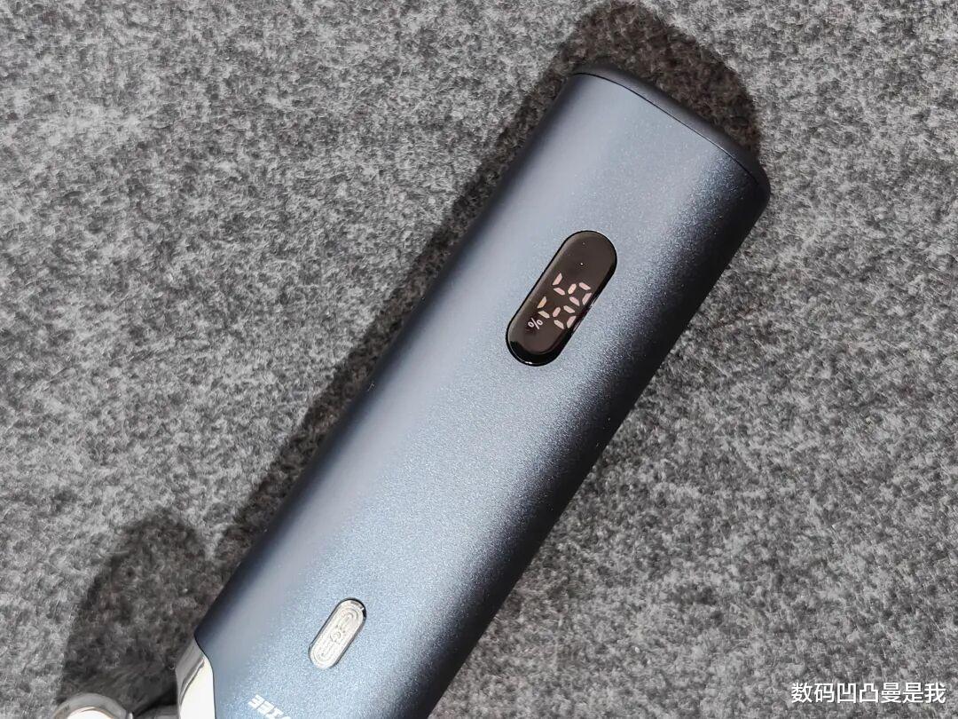 剃须刀机身采用铝合金材质,重约148g,轻盈耐磨抗造,握持部分采用人体工学设计,哑光磨砂表面防滑又不易留指纹,除了电源键外还有一个电量数显屏,可以随时查看电量使用情况及时充电。