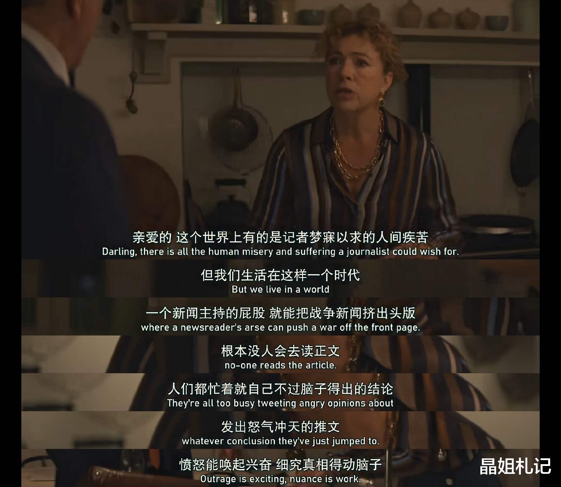 当道格拉斯以传统媒体人的价值观,质疑这个世界已经没有真正的新闻了,妻子希拉劝他放弃所谓的天真和幻想,因为在这个时代,名人的言行举止可以轻松夺走人们的注意力,从而把真正反映人间疾苦的新闻挤出头版。乌合之众往往被情绪所驱使,懒得动脑子细究真相。