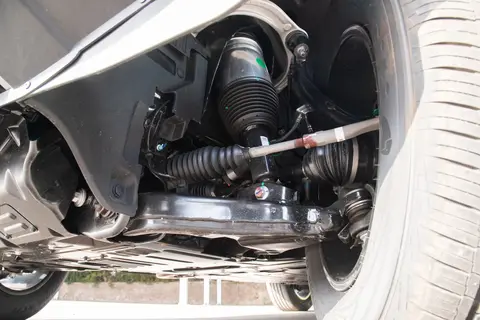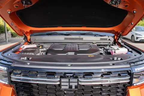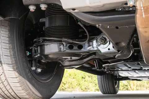 硬派越野的核心在于稳固的底盘架构。该车采用非承载式车身,车架刚性表现良好。在郊外穿越坑洼碎石路面时,车身没有出现多余的异响与形变,能够较好地 抵 御路面冲击。离地间隙处于合理水平,配合优化后的接 近角与 离 去 角,面对野外陡坡、浅滩、坑洼路段时,大多能平稳通过,无需过度担心底盘剐蹭。在体验过程中,遇到近30度的载物土坡,平稳给油即可  顺 利  登 顶,动力输出持续稳定。