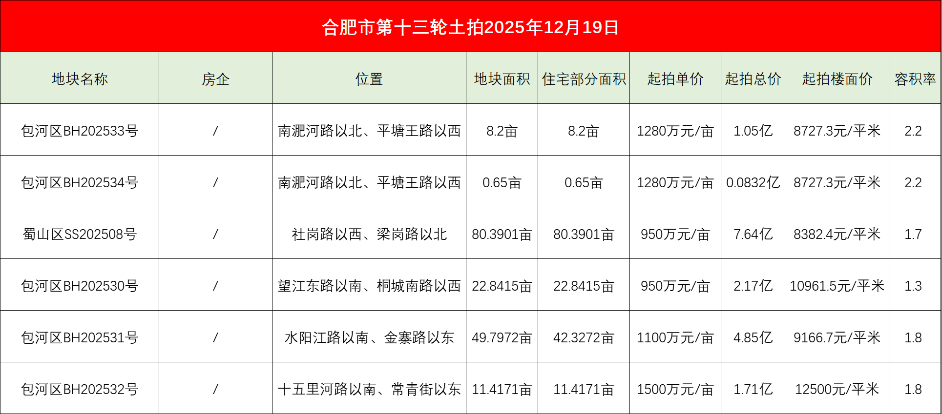 近日,合肥陆续发布国有建设用地使用权出让公告,计划于12月19日出让包河、蜀山的6宗居住用地。(暂定,后续也许还会新增地块)