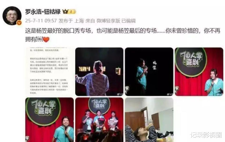 当笑果文化在 2023 年新增敏感词限制,“普信男” 等核心创作议题被封禁,杨笠的表达空间被进一步压缩。罗永浩在看完她 2025 年巡演内测场后预言:“这是她最好的专场,也可能是最后一场”。此时的清空社媒,更像是一场与过去的切割 ——32.7 万粉丝的抖音账号清空,微博仅留 2020 年 “挺一挺就过去了” 的置顶,为新身份扫清舆论障碍。