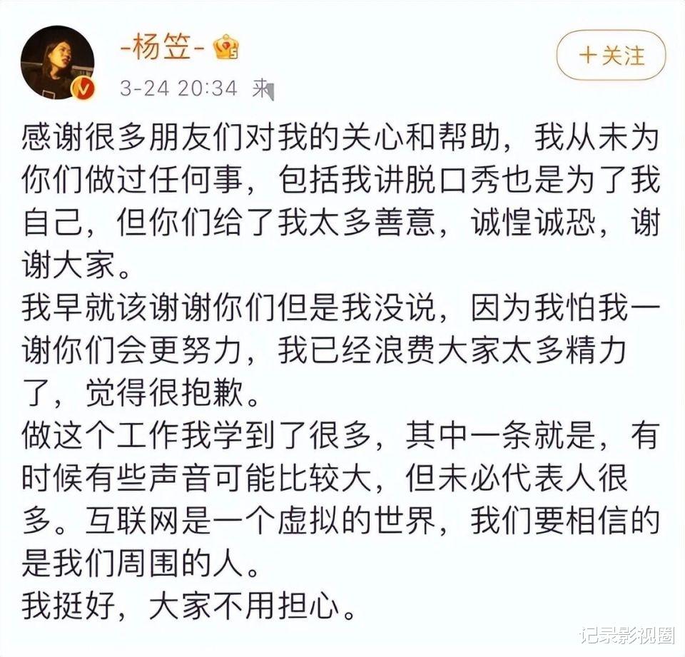 杨笠的转型也照见了行业困境:当脱口秀的 “好笑边界” 被不断压缩,当段子动辄被过度解读,演员的压力早已超出创作本身。她的选择提供了另一种可能:不必在舆论的夹缝中妥协,也不必为了流量消耗自我,而是通过调整人生坐标,为创作找到更健康的土壤。