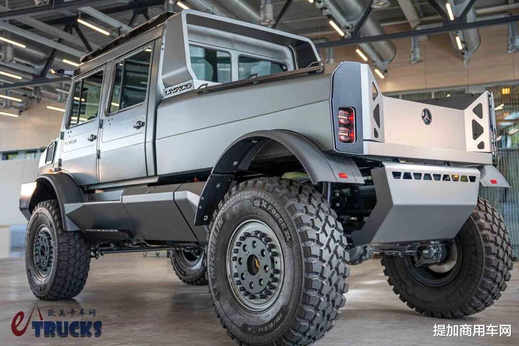 熟悉奔驰的读者,肯定会对G63 AMG 6×6这款车型有着深刻的印象。它搭载V8发动机,采用6×6三轴全轮驱动,并采用皮卡车身,是世界上最为强大的皮卡之一。不过,这款车型价格高昂、产量稀少,仅有顶级玩家才能拥有。这款乌尼莫克豪华版车型在设计上汲取了G63 AMG 6×6的某些理念,采用可容纳四人的豪华双排座驾驶室与皮卡式车身,兼具独特格调与多功能性。