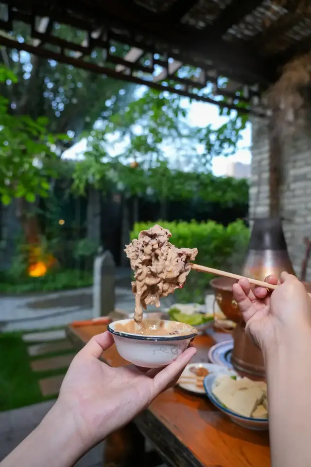 坐在院子里,更有感觉,清凉自在,涮肉这种朴素民间美食都变得高级了不少!