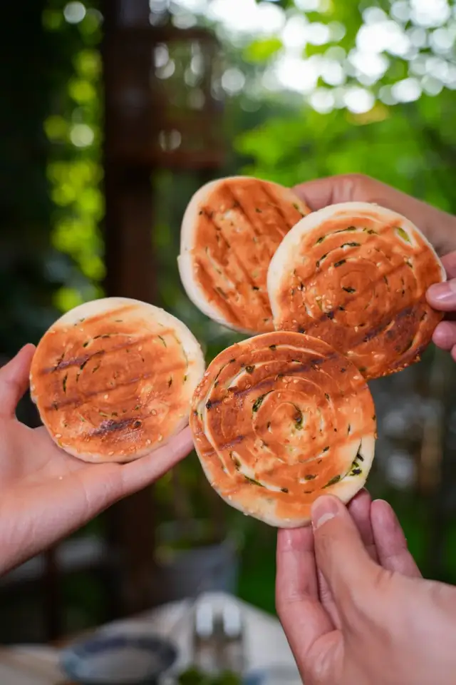 店里的小饼儿,淡淡葱香油香,吃几口还觉得有股淡淡的甜味儿。
