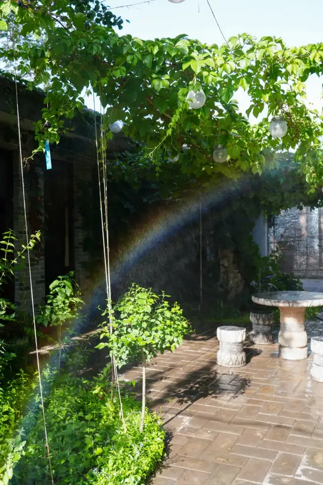 阳光普照时,因弥散在空气里的水雾,“彩虹”在小院里变得不再是稀缺品。