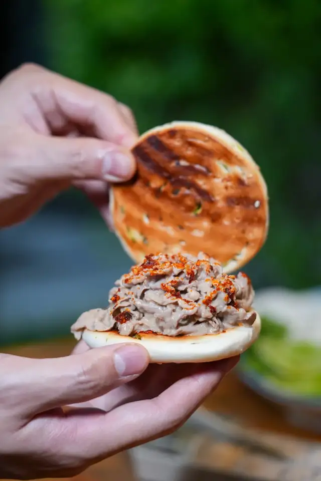 夹上蘸好麻酱的涮肉,妥妥的肉食+碳水爱好者福音。
