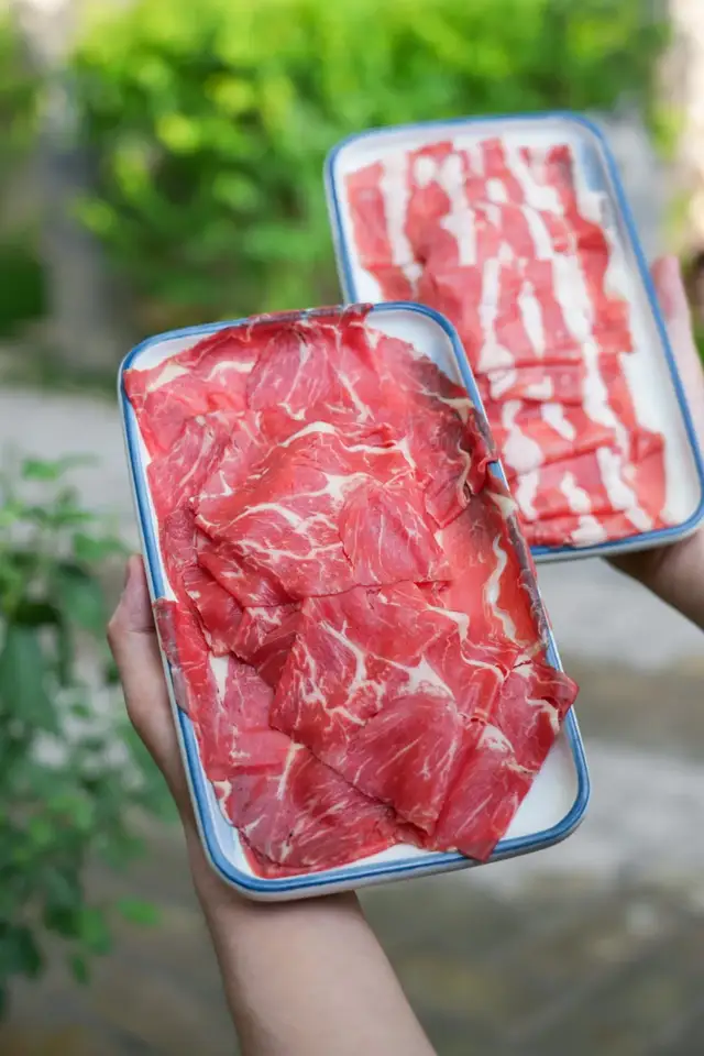 盐池羊上脑、精品肥牛一号、泾源黄牛上脑肉、盐池精品羊肉、上海梅林牛肉午餐肉,这也是店里点单较多的几款,我们自然也是闭眼选。