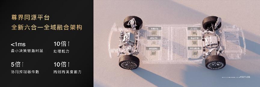 以智能驾驭性能,新款享界S9升级全新一代华为途灵平台,让豪华更从容。新车采用前独立双叉臂,后五连杆悬架设计,标配5档可调的智能空气悬架,全新连续可变阻尼减振器,操控与舒适兼得,机械质感媲美百万豪车;升级尊界同源的全新六合一全域融合架构,决策时间更短,调度能力更强,搭配华为乾崑智驾ADS 4、时空智能悬架网络、HUAWEI XMOTION Control智能车身协同控制及HUAWEI DATS动态自适应扭矩控制等多项技术的协同配合,如同赋予了新款享界S9底盘“明亮的眼睛”、“聪明的大脑”以及“强壮敏捷的四肢”。在出行中,车辆提前路况预瞄,路况空间模型分辨率提升100倍[10],并通过高效智能思考,精细化协同控制,紧急避障精准操控、颠簸路、坑洼路游刃有余。在中汽中心麋鹿测试中,更是取得了84.1km/h[11]的优势成绩,为用户带来颠覆性的操控性能。