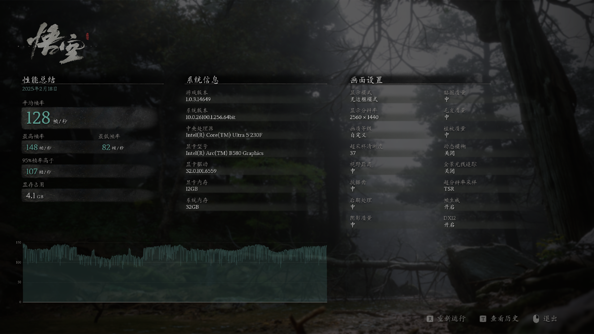 作为国产游戏的扛把子,销量超2000万套以上的神作,而本人是连第一个BOSS都过不去的菜鸡,当然不影响我测试它。较为可惜的是悟空虽然可以打开XeSS超分技术,但是实测帧数表现不佳,建议打开TSR/FSR。