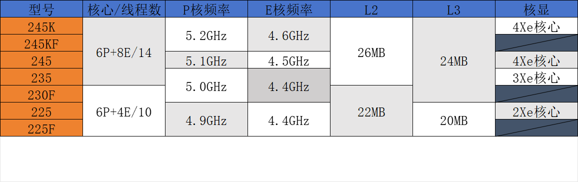 CPU&主板:酷睿Ultra5配铭瑄终结者Intel发布酷睿Ultra 200系列中,235F是发售相对晚一些的,在Intel发布的处理器中处于中游的位置,对于普通消费者来说,重新熟悉Intel的产品布局又是一件头痛的事情,那么本人就用一个表格来表达。