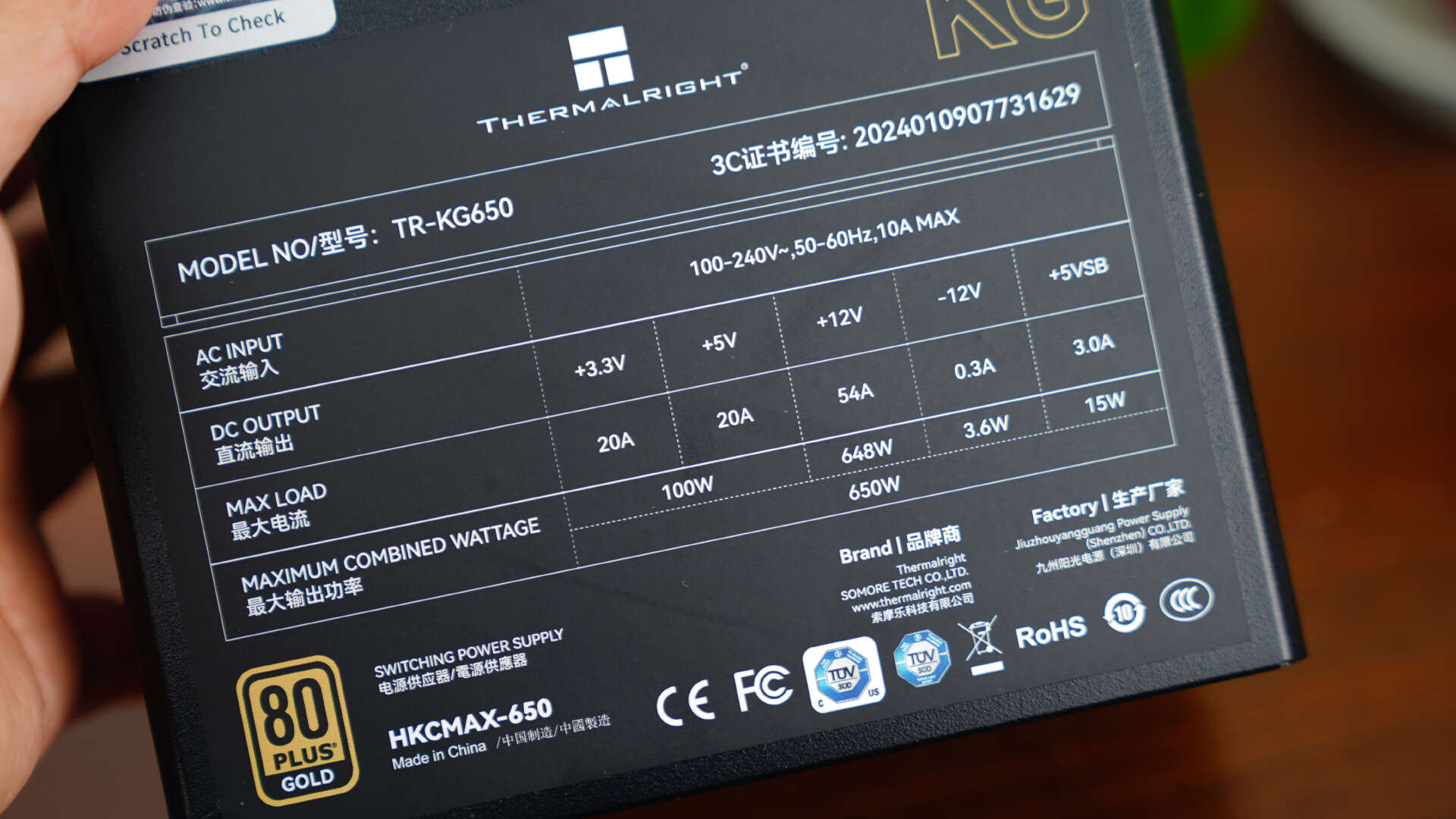 ▼可以看到最大输出功率,+12V就达到了648W,54A,对于Ultra5和B580绰绰有余。