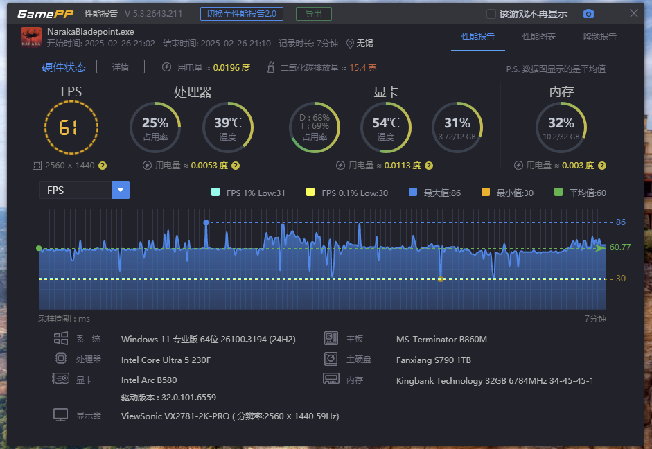 测试到现在,就发现一个问题,作为最吃显卡的两款3A大作,不管是《黑神话悟空》还是《赛博朋克2077》在2K分辨率下,Intel ARC B580都可以玩的非常轻松,但与测试工具的测试成绩相比,似乎规格更高的B580在实际游戏中的体验,其部分测试的帧数低于RTX4060ti,但其差距并未达到影响你玩耍的程度,当然受限于测试项目,也有差距更大的游戏,例如《永劫无间》,以水桶效应来看,将B580放在RTX4060同一条线上对比似乎是更为合理。