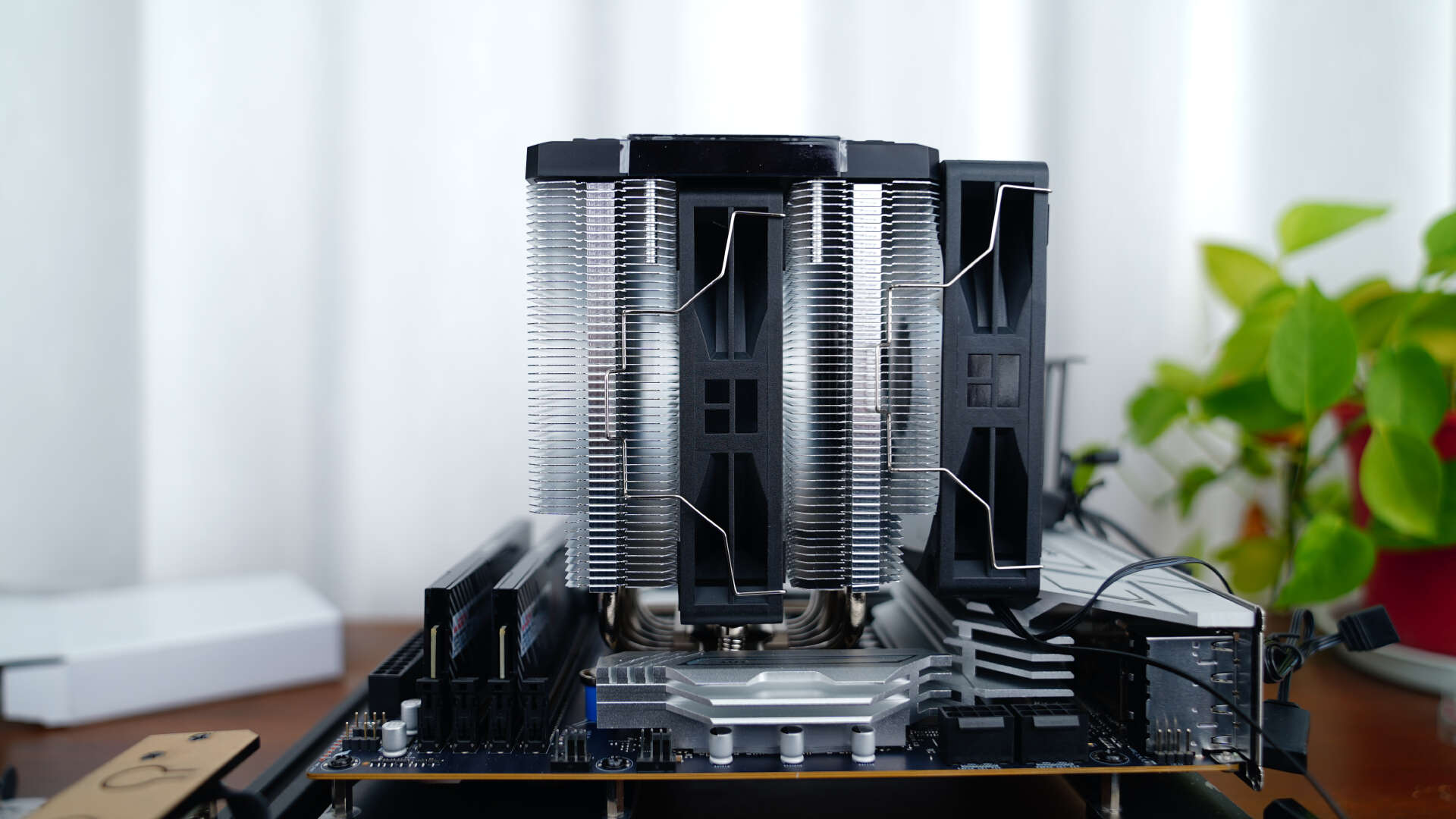 ▼采用THERMALRIGHT AGHP逆重力热管技术5.0,解决了立/卧安装造成的散热问题,6mm×6热管双塔设计哪怕是Ultra9都不在话下,顶盖采用磁吸设计,可以直接取下来,当然,由于顶盖的设计,厚度较常规散热器会稍高一些,高度达到了162mm,部分机箱可能会有安装问题。