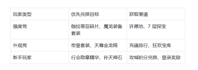 许愿券高效获取:①每日完成 “文明遗迹探索”(携带埃及文明烙印可触发隐藏宝箱,必出 2 张券);②参与 “月中试炼” 任务,通关 3 层魔龙秘境额外领 10 张;③充值 1 元得 1 狂欢积分,满 100 积分可兑换 5 张券。