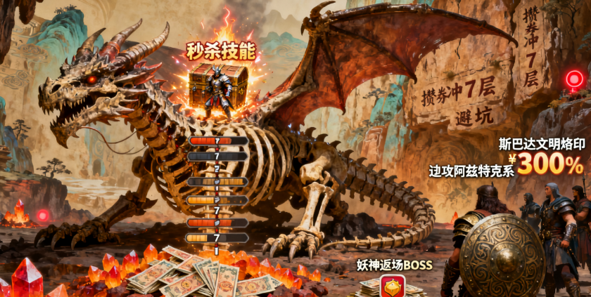 稀有 BOSS 速刷:活动期间野外首领复活时间缩短 50%,组队携带 “斯巴达文明烙印” 攻击阿兹特克系 BOSS,伤害提升 300%。