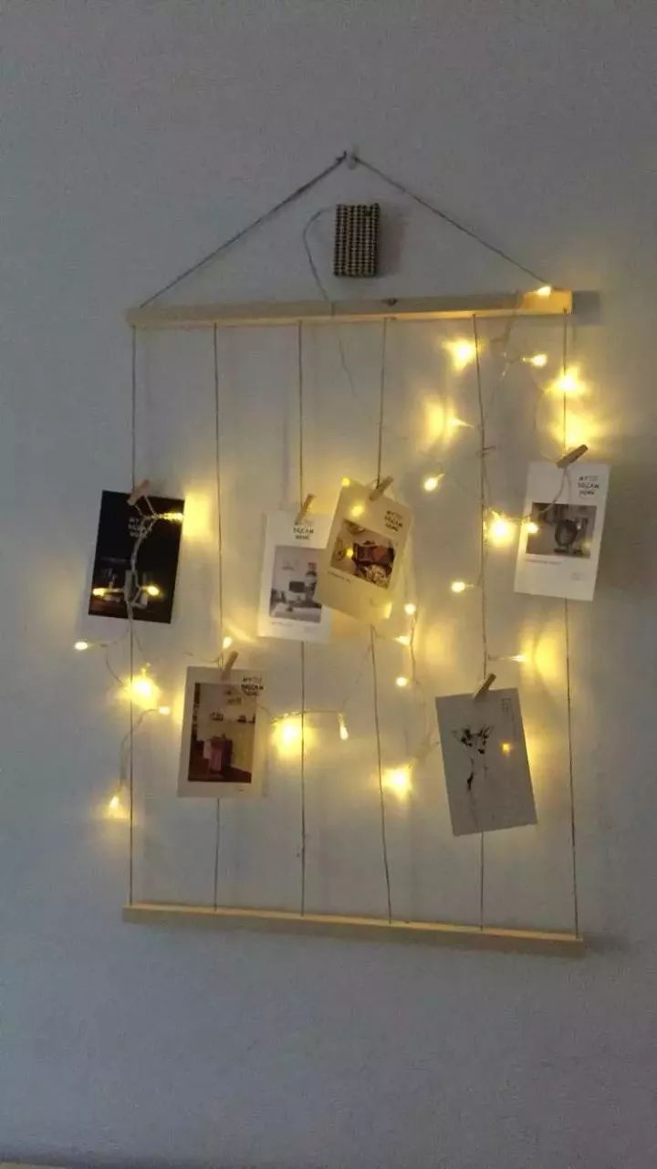 照片墙 + 串灯:别用射灯装饰照片墙了!在照片周围绕一圈小串灯,暖光会把照片烘托得更有温度,每次看照片都像在回忆里 “发光”,绝对能成为来家里做客的朋友眼中的焦点。