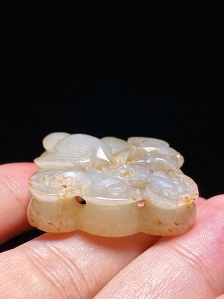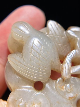 元 和田玉白玉籽料 海东青击鹄 春水 带饰 玉珮 挂件 长3.7 宽3.6 高1.2厘米 重22.2克 辽,金,元时代帝