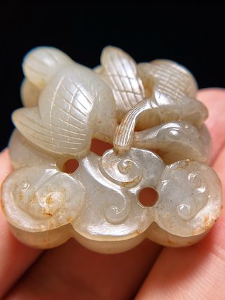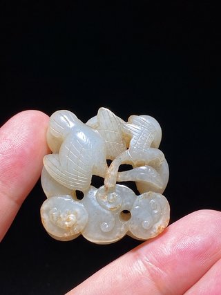 元 和田玉白玉籽料 海东青击鹄 春水 带饰 玉珮 挂件 长3.7 宽3.6 高1.2厘米 重22.2克 辽,金,元时代帝王贵族盛行于春天在湖泽水边狩猎苍鹅,时称“春水”,所雕此类题材玉器,统称为“春水玉”。此佩以白玉雕就,玉色洁白温润,采用透雕之技法装饰春水纹样,海东青自天而降,捕猎仓惶躲藏的天鹅,羽翅翻转,造型写实,紧张之氛围呼之欲出。整器画面刻划细腻,形象生动,镂雕丰满,为典型金元时期风格之佳作。