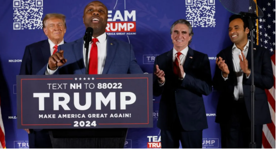 参议员蒂姆·斯科特(Tim Scott)可以说是美国最著名的黑人共和党人,是特朗普在党内初选中击败的竞争对手之一。现年58岁的斯科特在早期投票州中宣传他乐观的保守主义品牌,以争取有影响力的福音派基督徒投票,但他的竞选活动从未火起来。在努力筹集资金和三场乏善可陈的辩论表演之后,他退出并迅速支持特朗普。正是他在新罕布什尔州初选前的特朗普竞选集会上发表的激动人心的言论,使他成为副总统的头号竞争者。