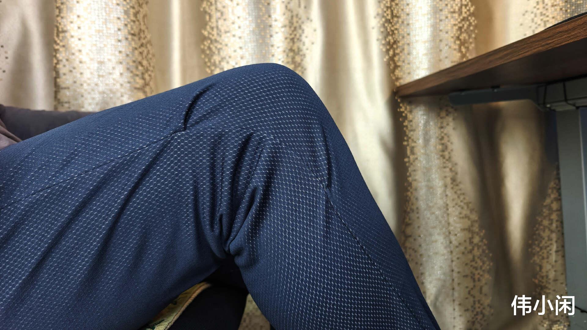 秋裤贴身,更需要随身而动,这种节褶的体验不错。在不穿外裤、穿外裤的情况下分别体验,还是比较舒服,没有感受到秋裤因局部用力的拉扯感。