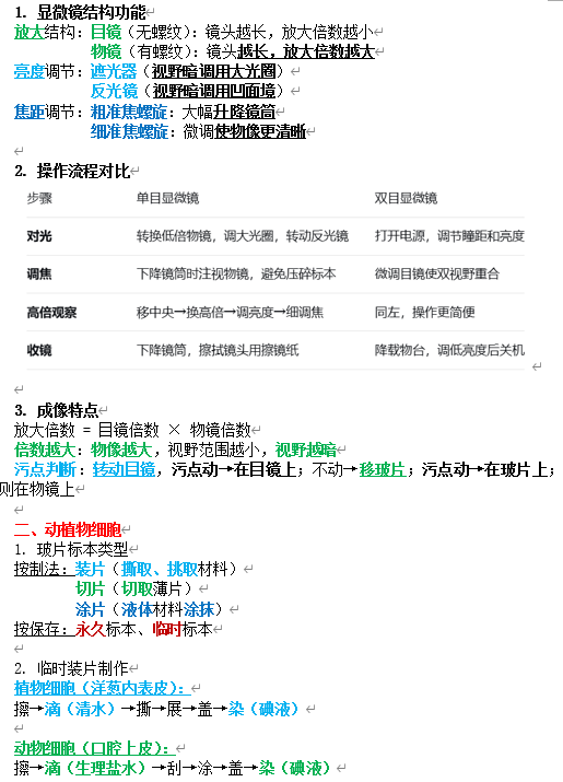 1. 显微镜结构功能