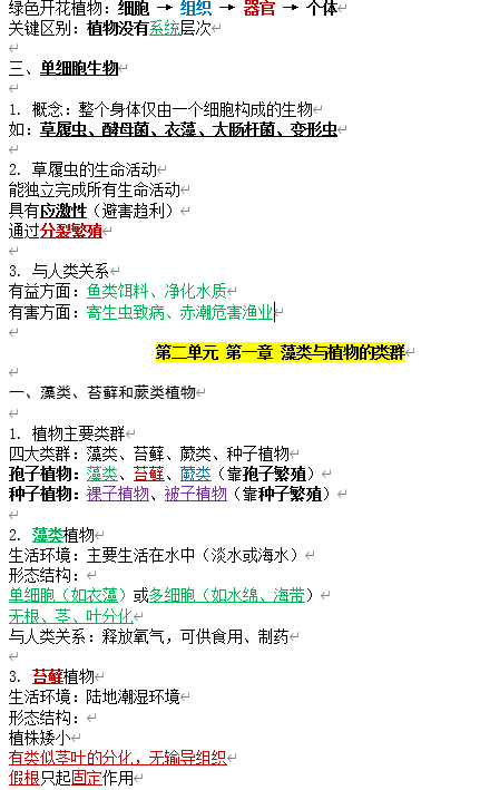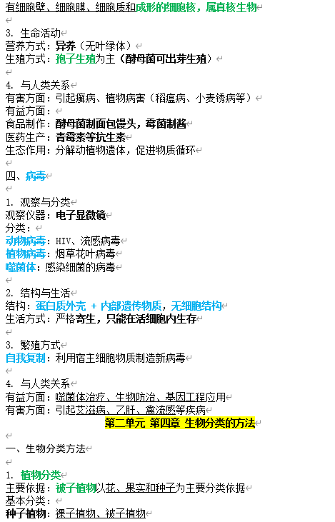 2024、2025人教版新教材七年级上册生物学知识点