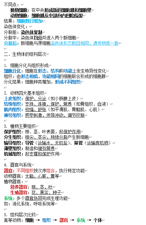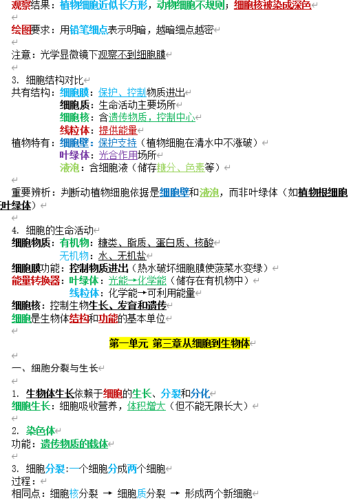 1. 生物体生长依赖于细胞的生长、分裂和分化