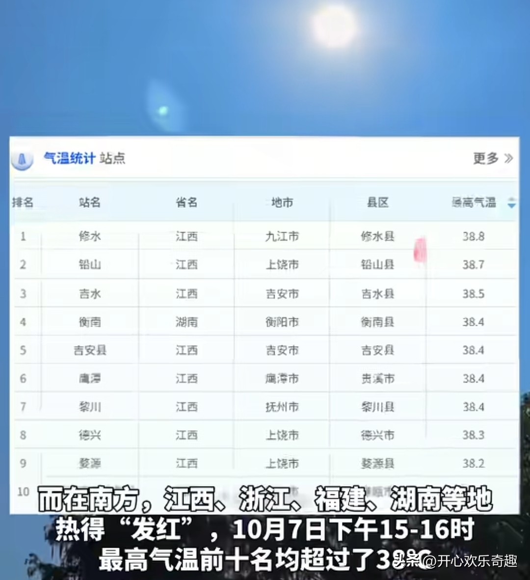 在我们南方,例如湖南,福建等等的地方,还有很多地方好热好热的。他们有的地方都超过了38℃。
